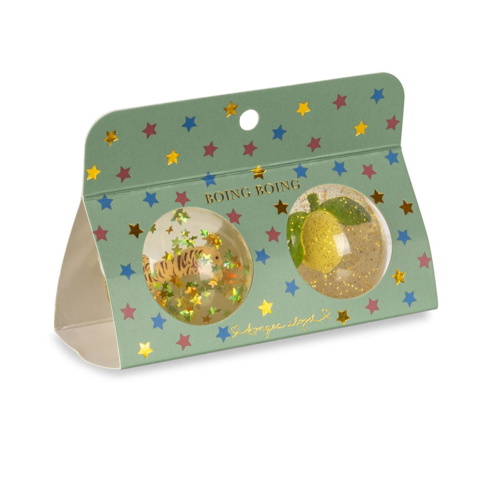 Konges Slojd Bollar med glitter och 3D-figurer Citron/Tiger 2 st