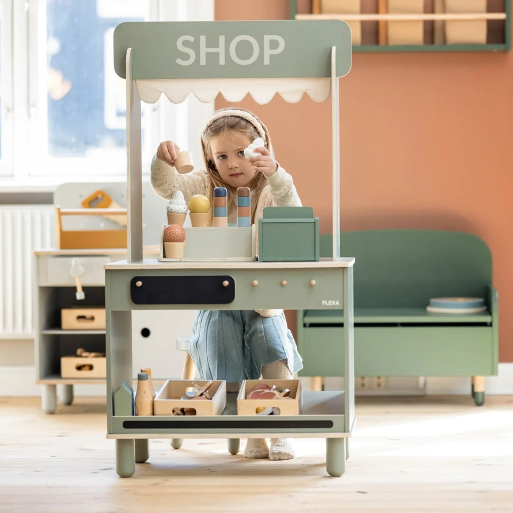 Butik och café för barn Natural green från Flexa.