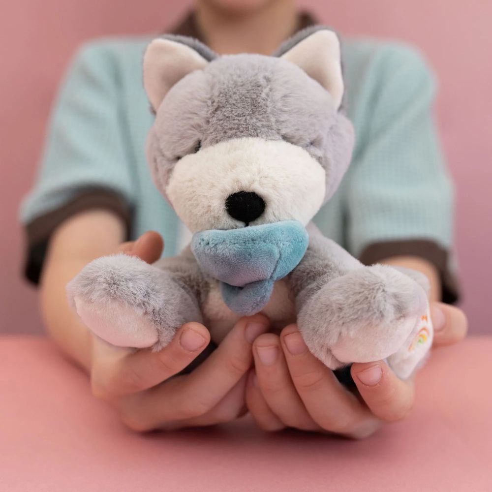 Denna lurviga och mjuka hund är den perfekta leksaken att krama, bära och leka med tillsammans.