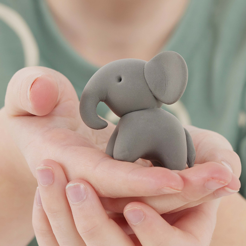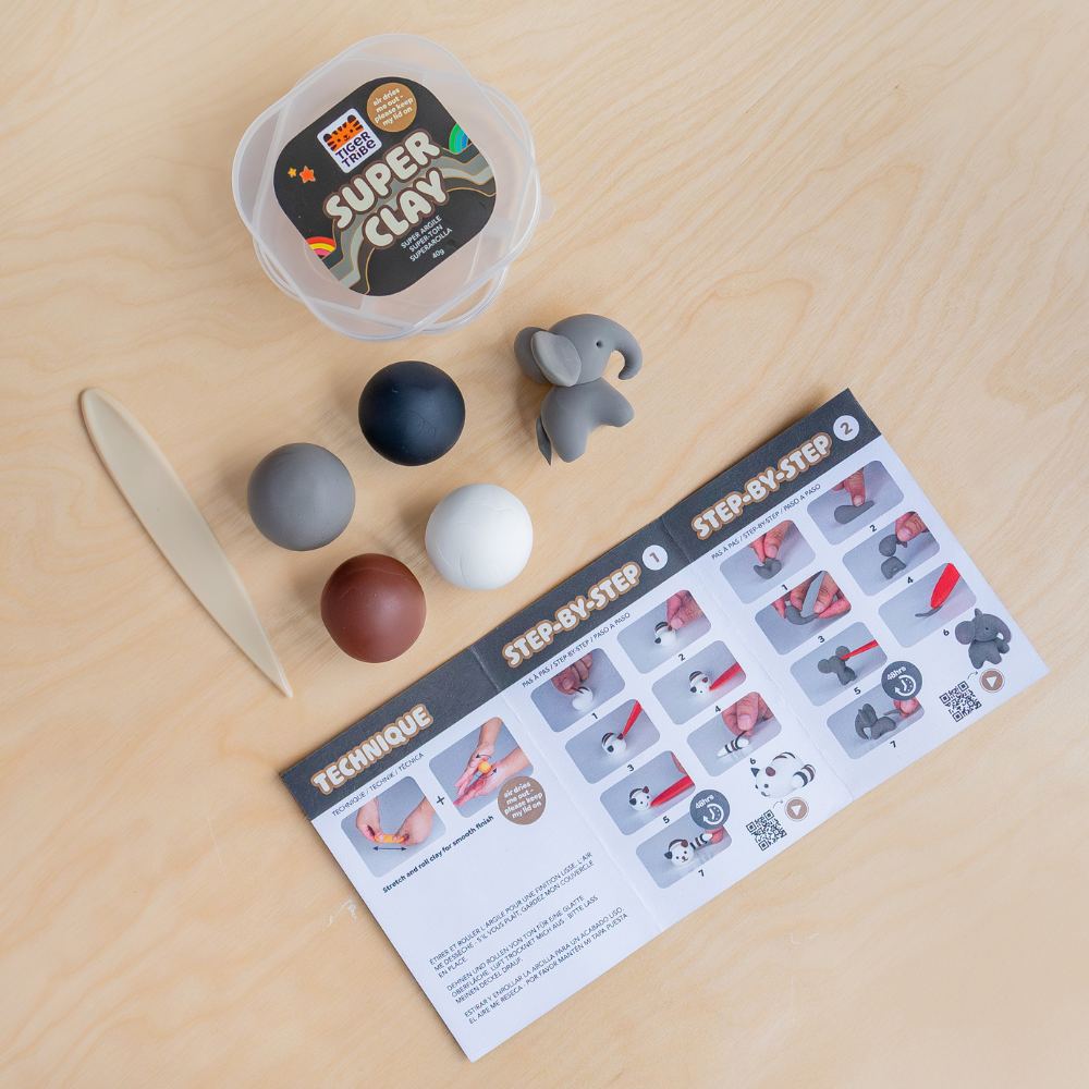 Den mjuka, lätta och taktila plastmassan uppmuntrar till knådning, klistrande och skulptering – antingen enligt de illustrerade instruktionerna eller enligt barnets egen fantasi.