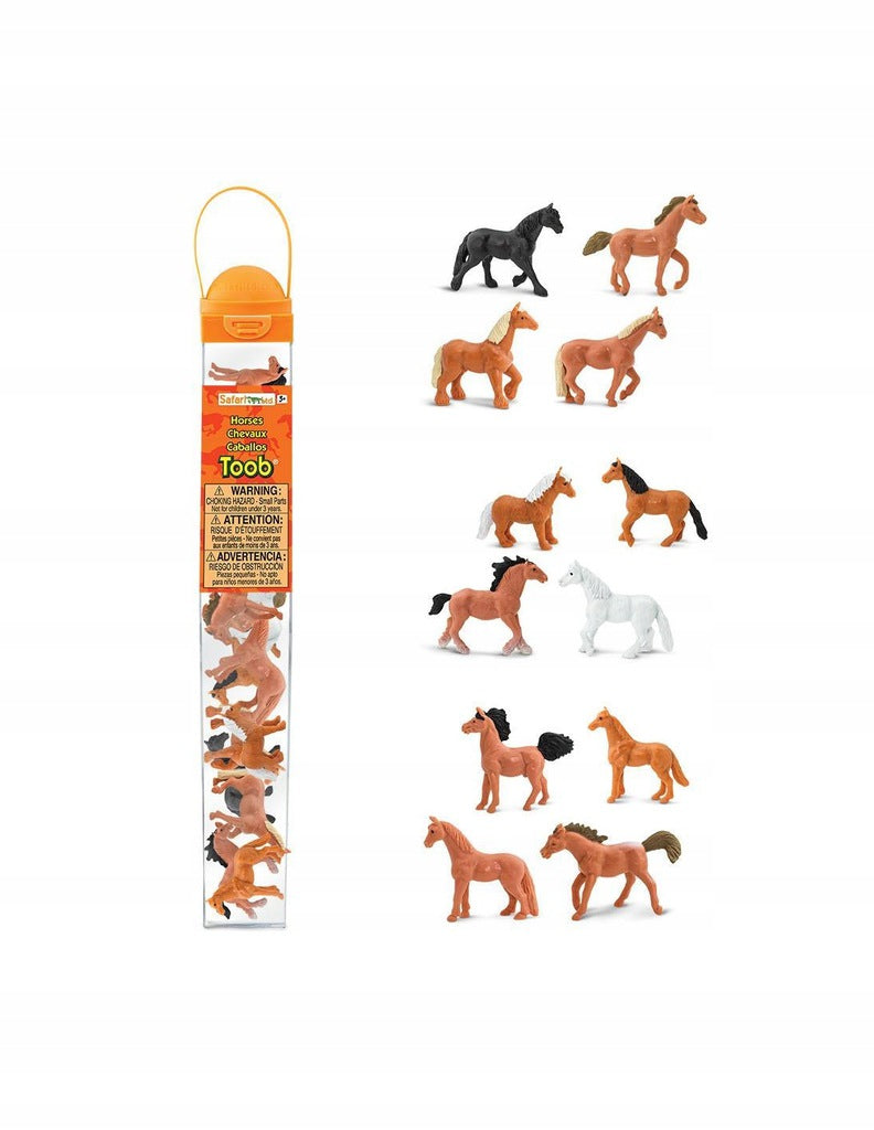 De söta hästfigurerna av olika raser i tub från Safari Ltd tilltalar alla hästälskare.