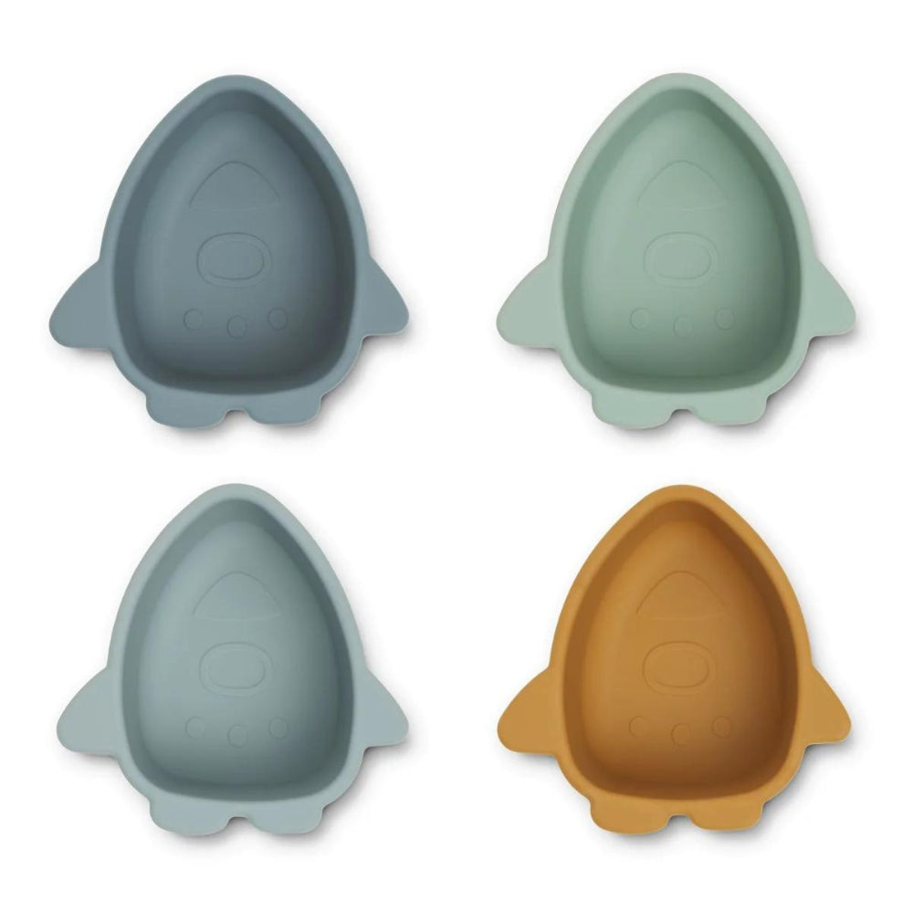 Malene Space Blue silikonskålar för barn mix by Liewood i fyra bedårande färger.