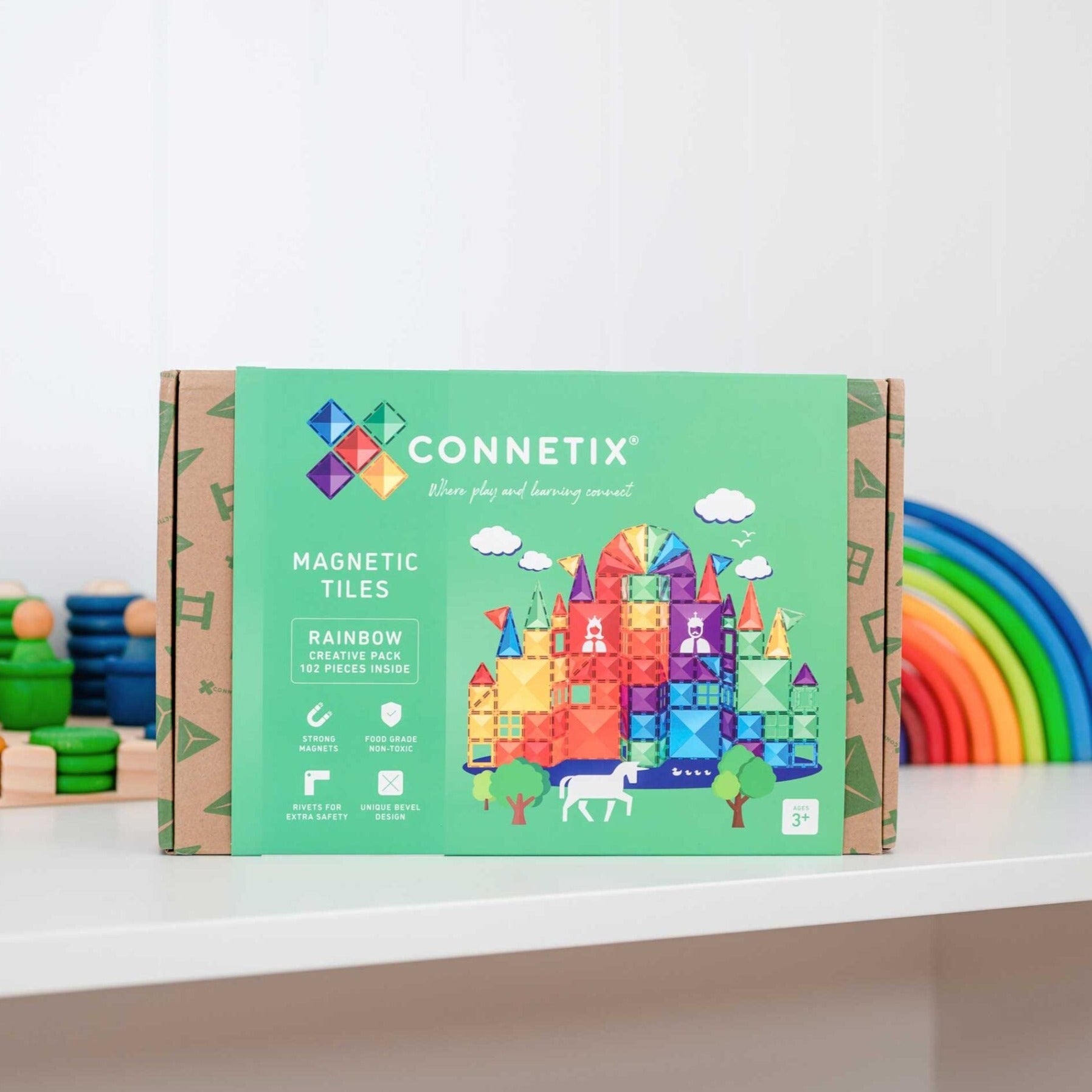 Connetix Magnetiskt regnbågspaket för barn, 102 delar.
