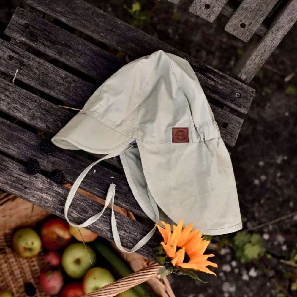 En enfärgad legionärsmössa från Mikk-Line med lång nackskydd och justerbar skärm som skyddar större delen av ansiktet och ger skugga för ögonen.