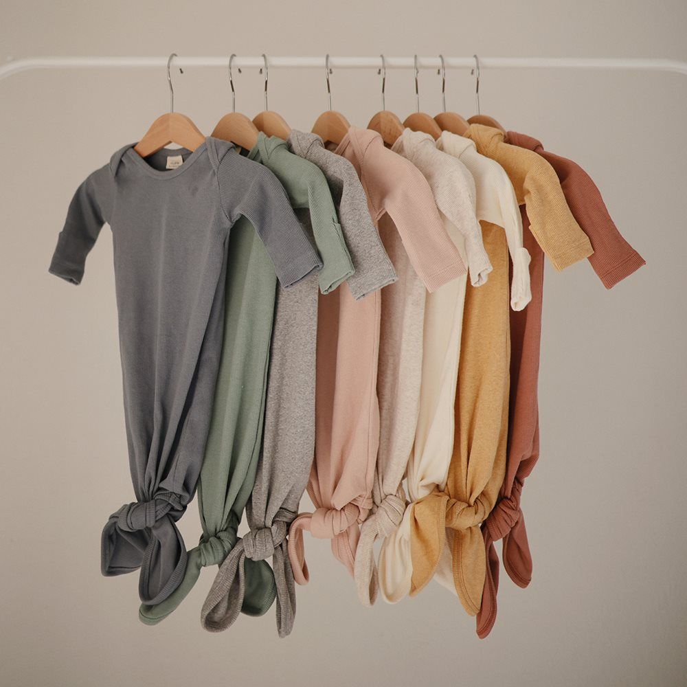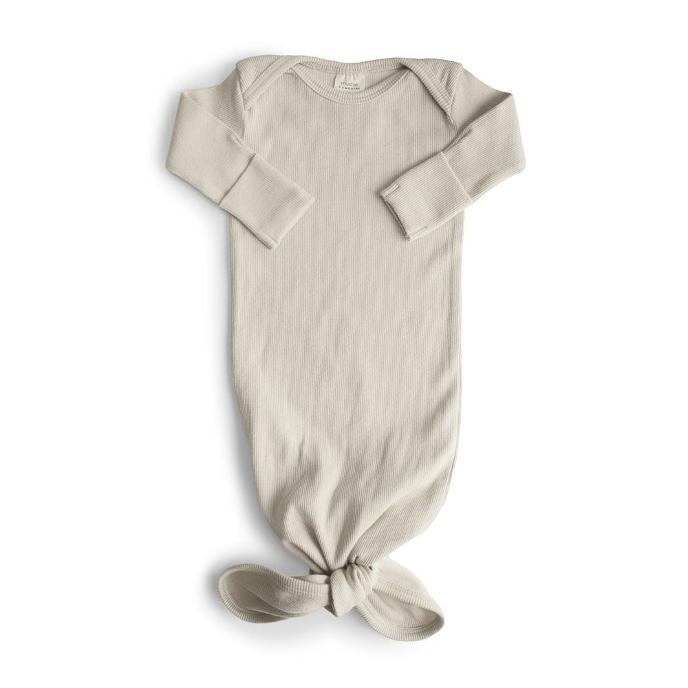 Den är sydd av ribbad ekologisk bomull och avslutas med ett knytband, så att du enkelt kan justera längden på pyjamasen.
