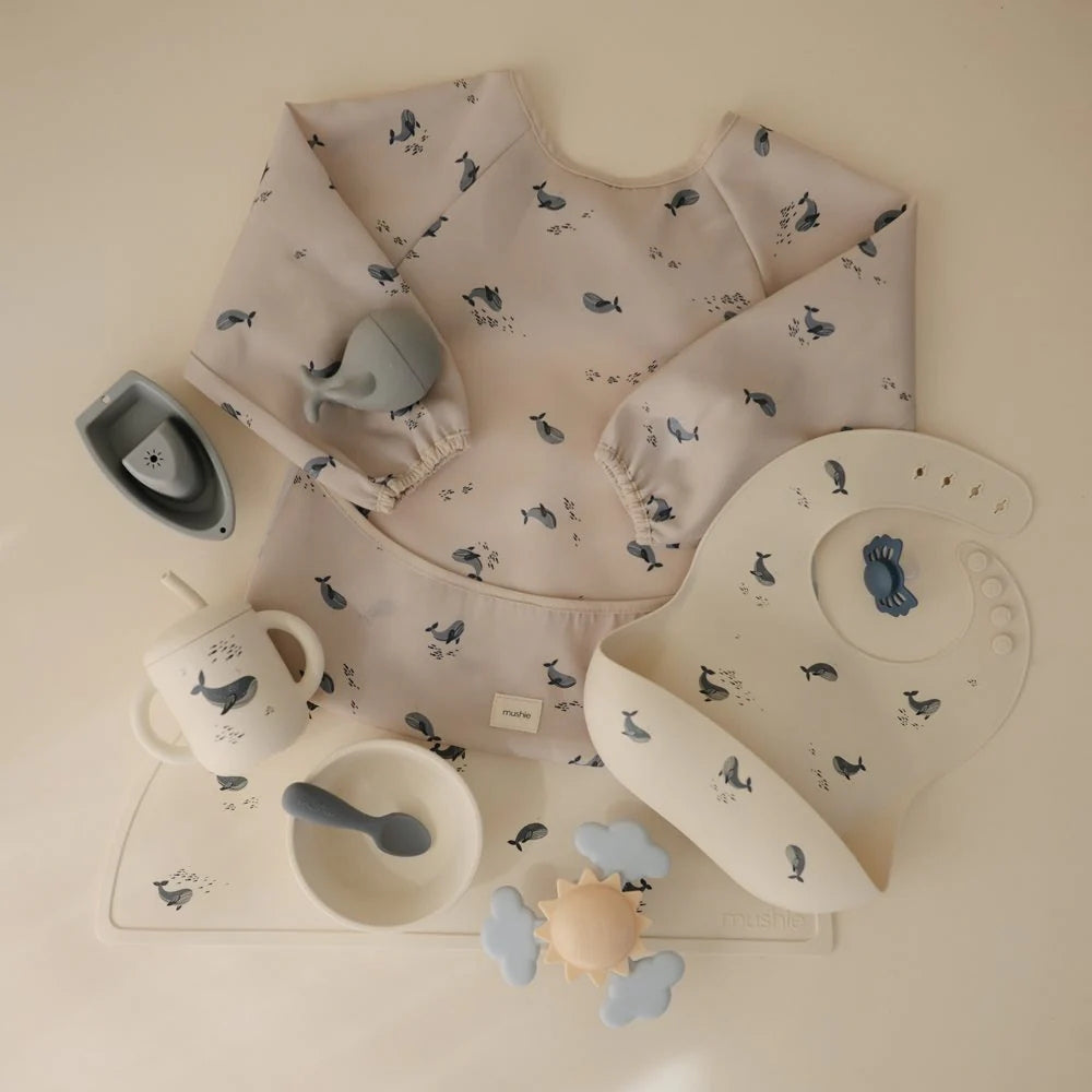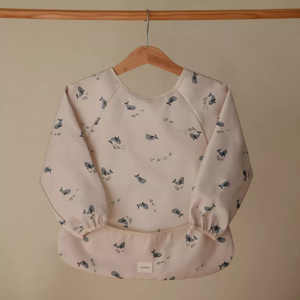 Vattentät långärmad haklapp med valmotiv från Mushie.