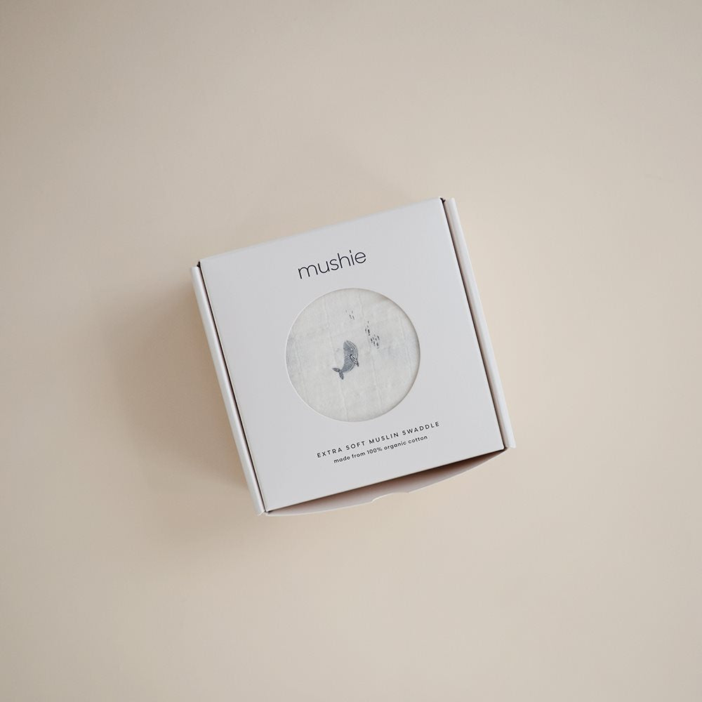 Mushie-muslinsvepningen är den perfekta presenten till en baby shower eller som en del av en babyutrustning till den blivande mamman.
