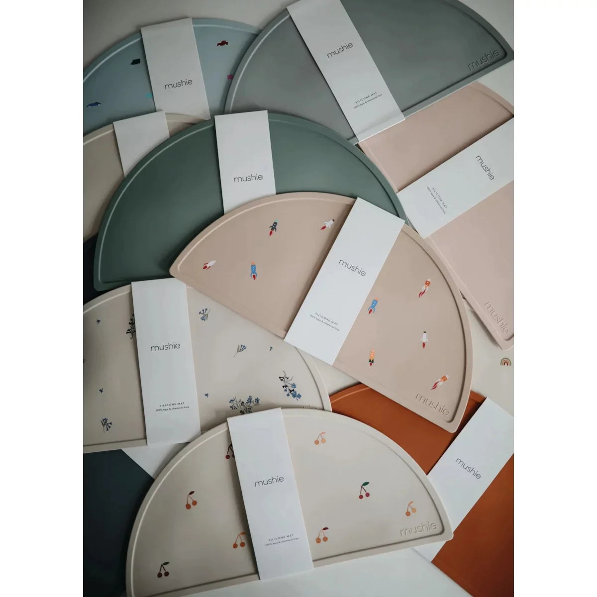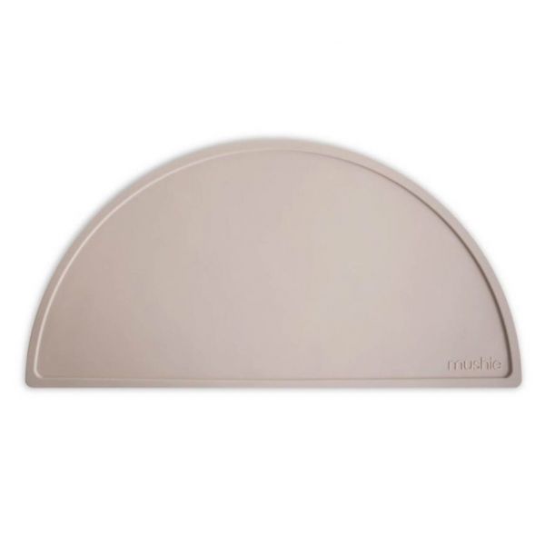 Shifting Sand Mushie bordsmatta i silikon är oumbärlig för ditt barns första självständiga måltider.