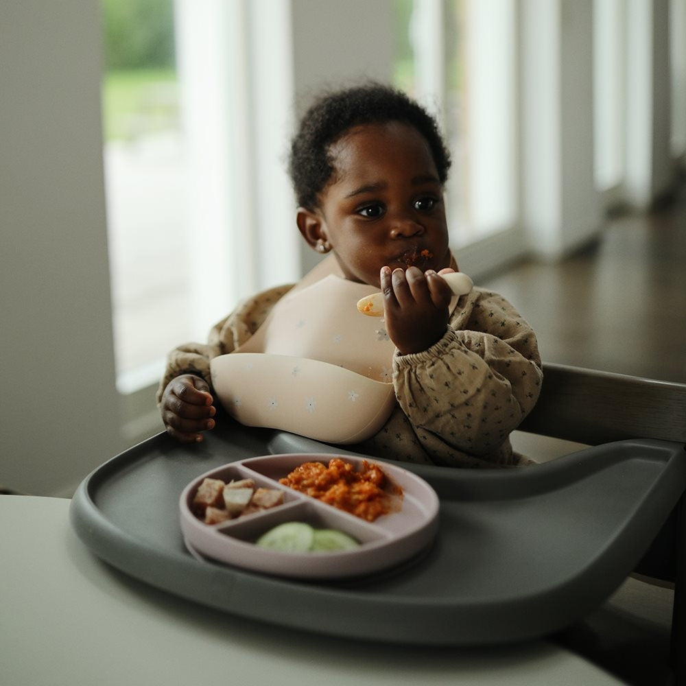 De matchar Mushies silikonhaklappar och andra bordsserviser.