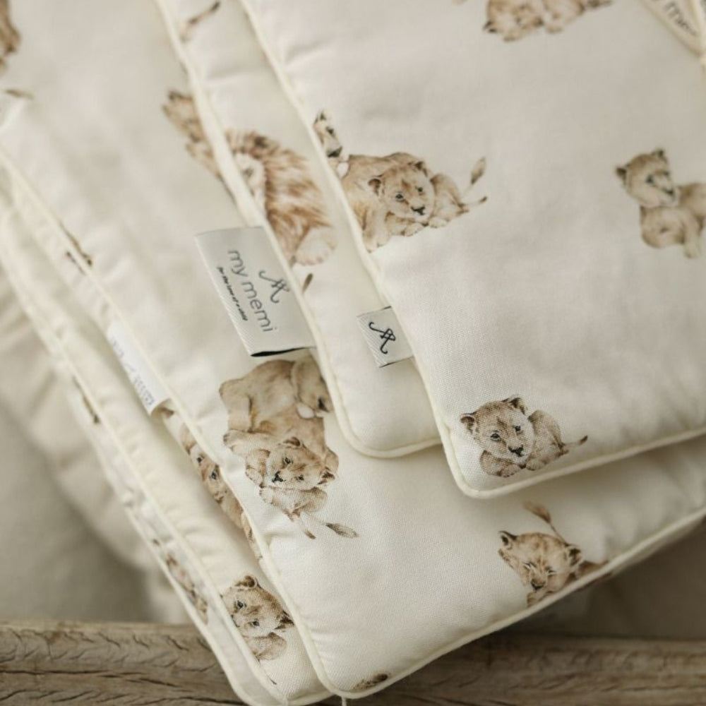 My Memi-babyhandduken är försedd med noggranna kantband, och dess klassiska Lions-kollektionsmönster ger en subtil accent till barnets babyutstyrsel.