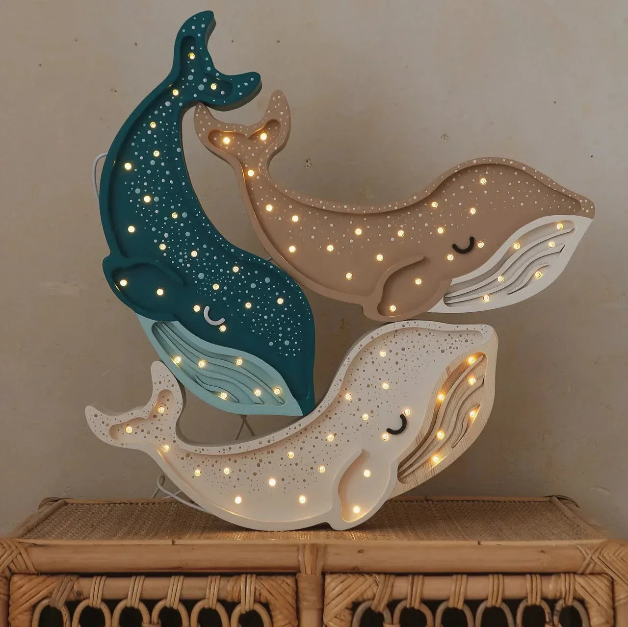 Lampan Little Lights i form av en val är det perfekta tillskottet till ett barnrum och skapar en magisk atmosfär under lek och kvällsläsning.