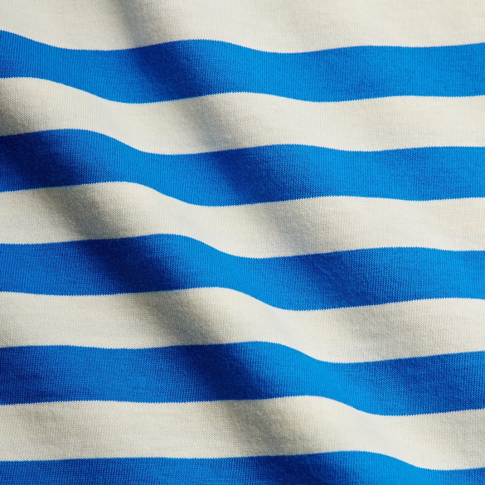 De blå och krämfärgade ränderna fångar blicken och ger hela setet en fräsch och vardaglig look.