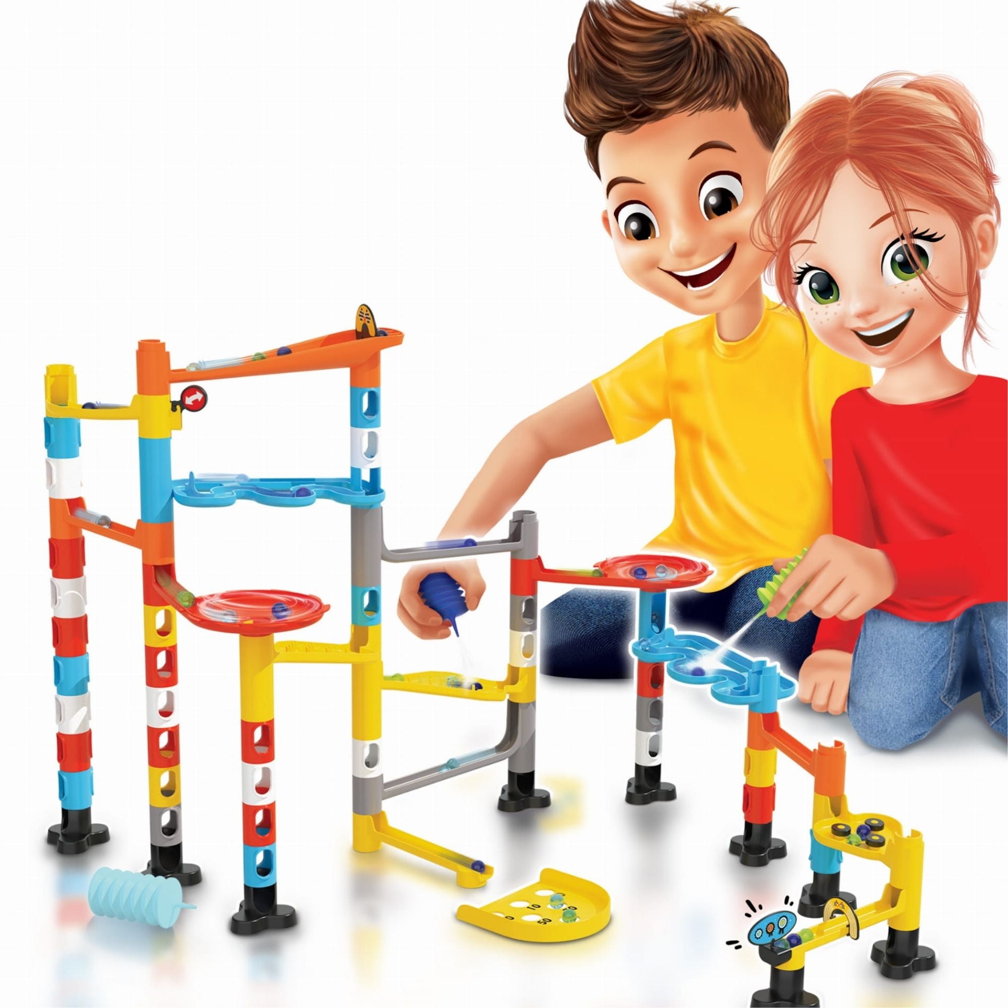 Bygg en labyrint, välj en färgglad boll och placera den på startlinjen.