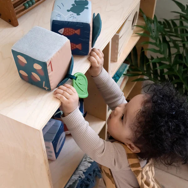 Sensoriska blocken är gjorda av taktilt material och är berikade med olika texturer och intressanta funktioner som uppmuntrar barn att utforska.