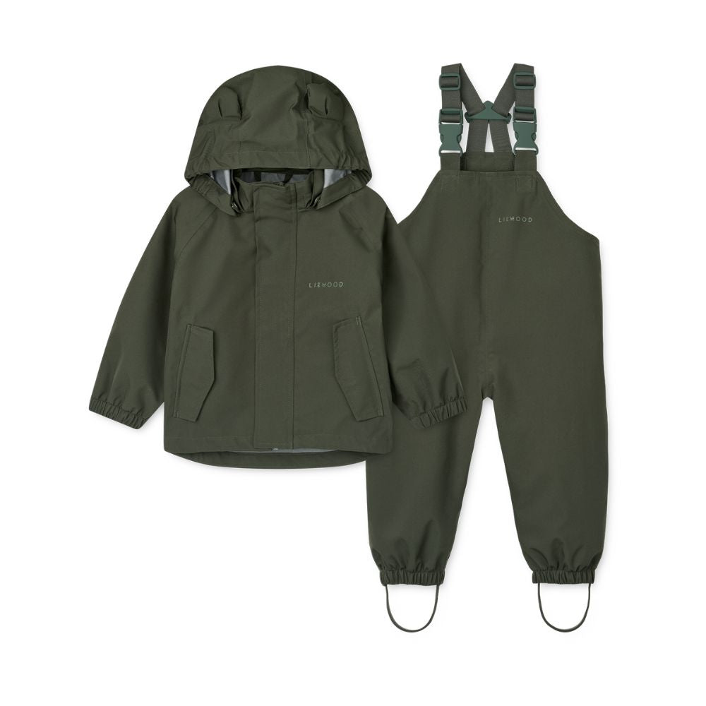 Manu Hunter grön regnjacka och byxor från Liewood.