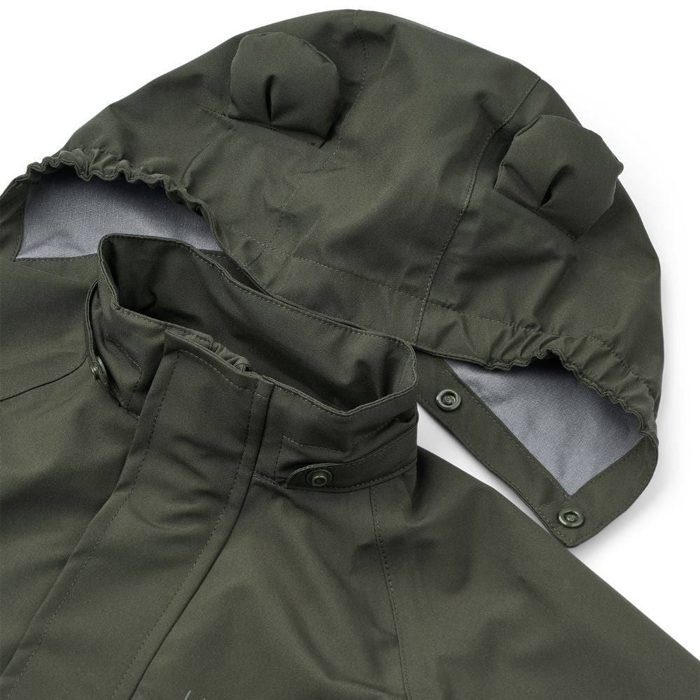 Liewoods regnsats har två fickor på framsidan och en avtagbar huva.