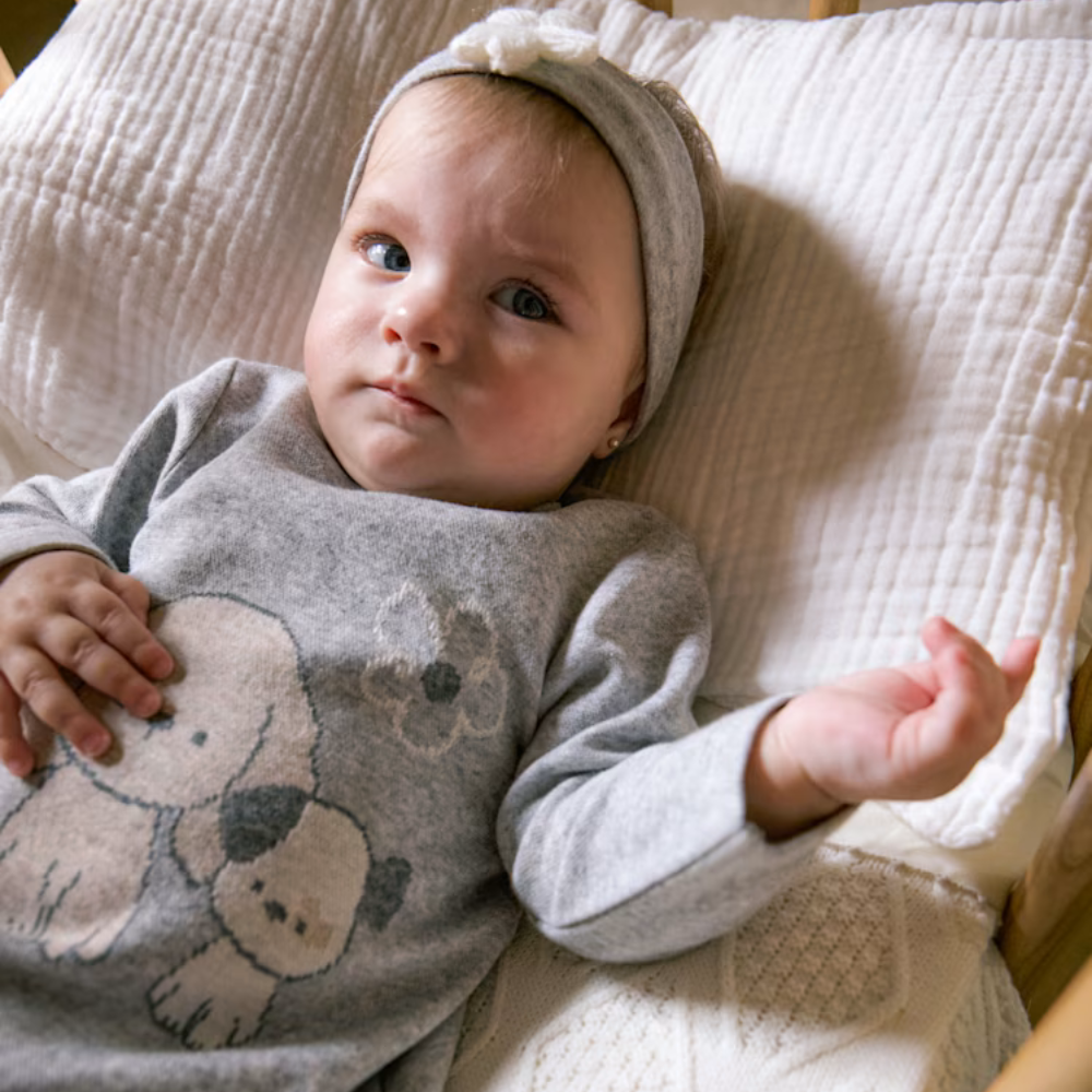 Wrapklänningen från Mayoral är ett sött och bekvämt set för nyfödda barn – perfekt för första utflykterna, familjefoton och speciella tillfällen.