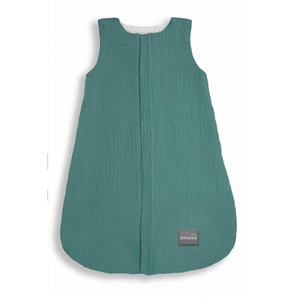 Denna innovativa dubbelsidiga muslin-sovsäck Bottle Green från Sleepee.