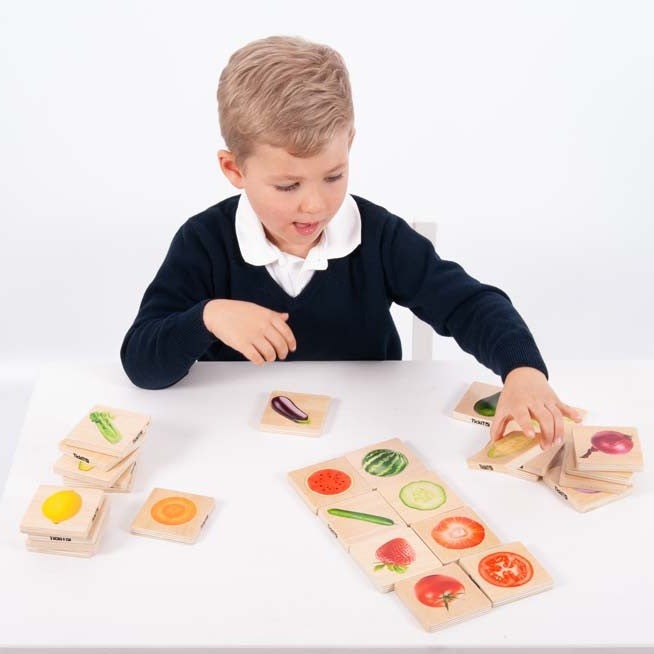 TickiT-pussel för barn kan användas för att matcha eller spela minnesspel eller för att sortera livsmedelsgrupper, t.ex. efter färg, sort, konsistens, smak etc.