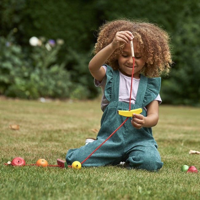 Färgglad fruktträdgård för barn, tillverkad av hemeträ med handmålade detaljer av TickiT.