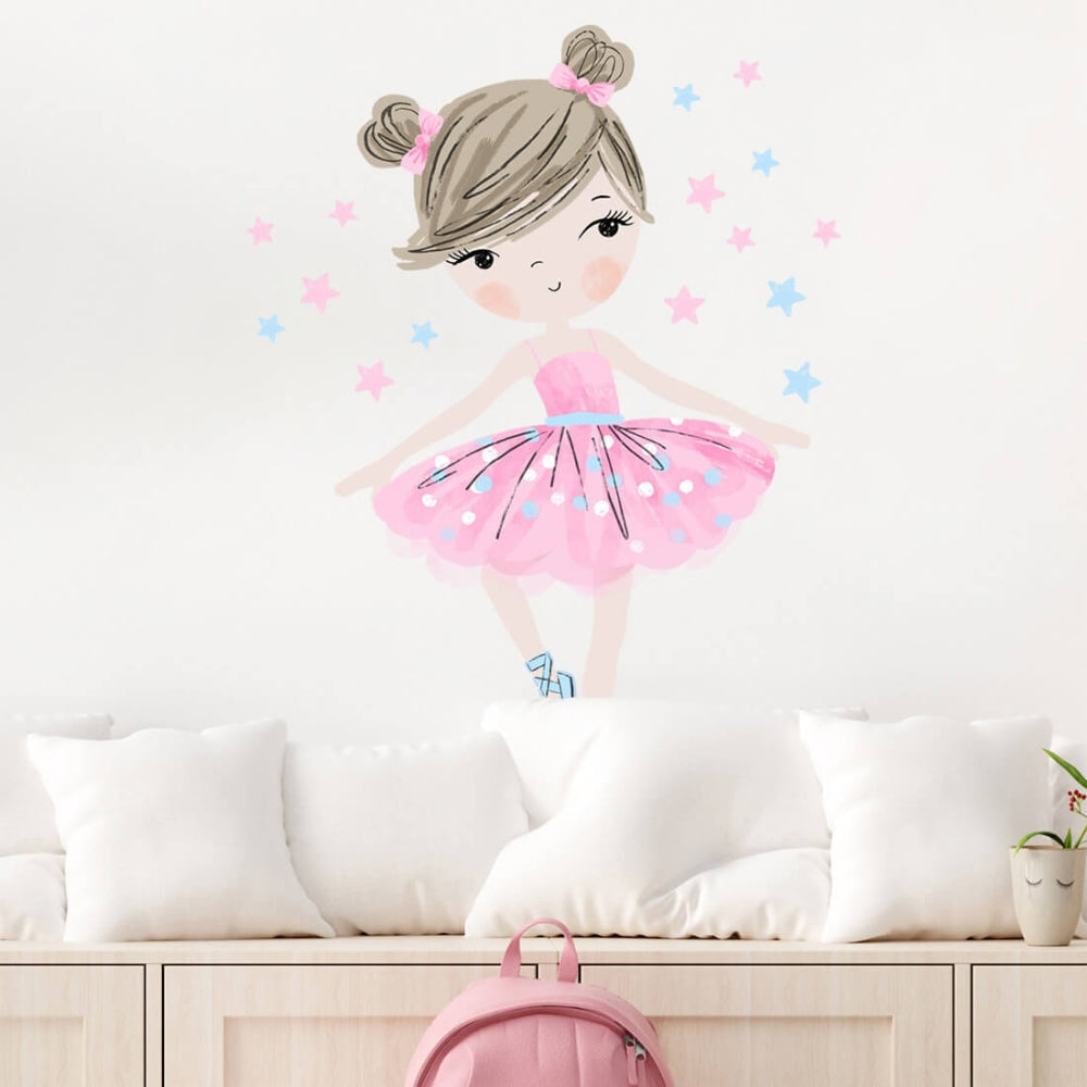 PASTELOVELOVE väggdekaler för barn ballerina rosa