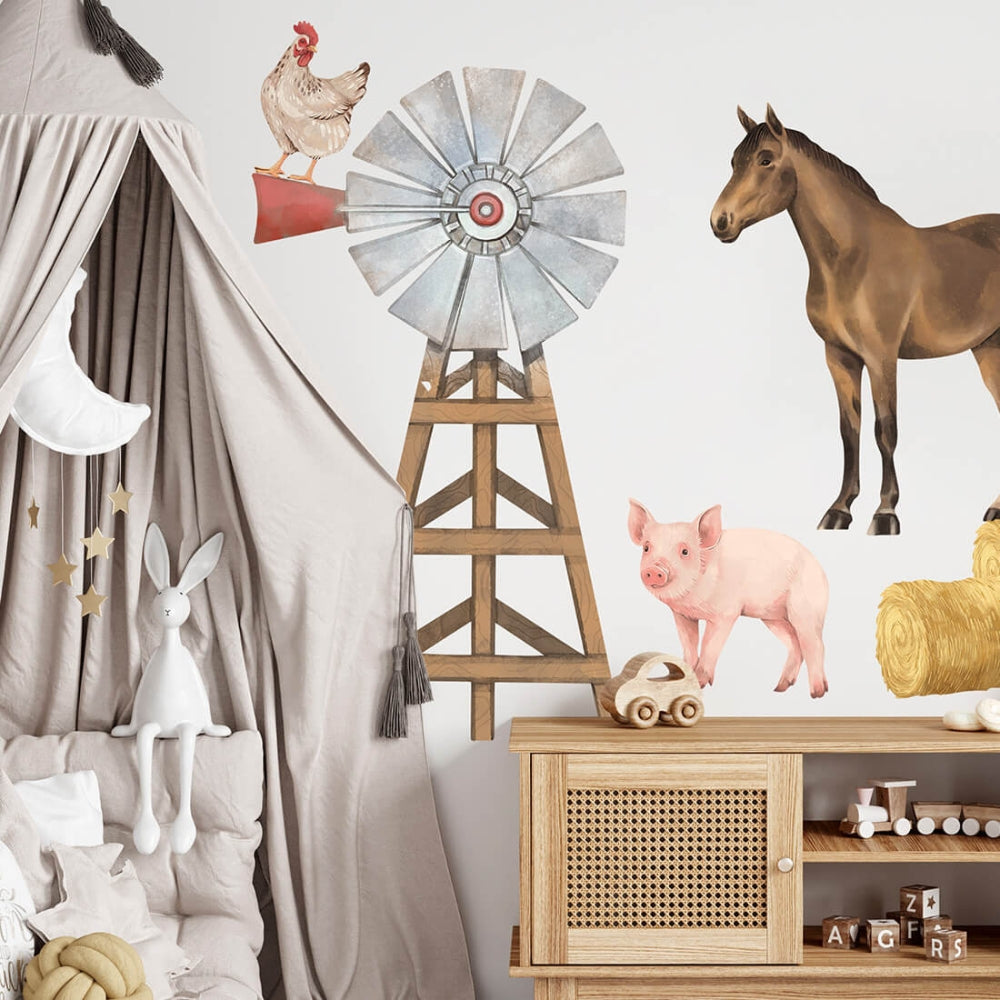 PASTELOVELOVE väggdekaler för barn bondgårdsdjur I
