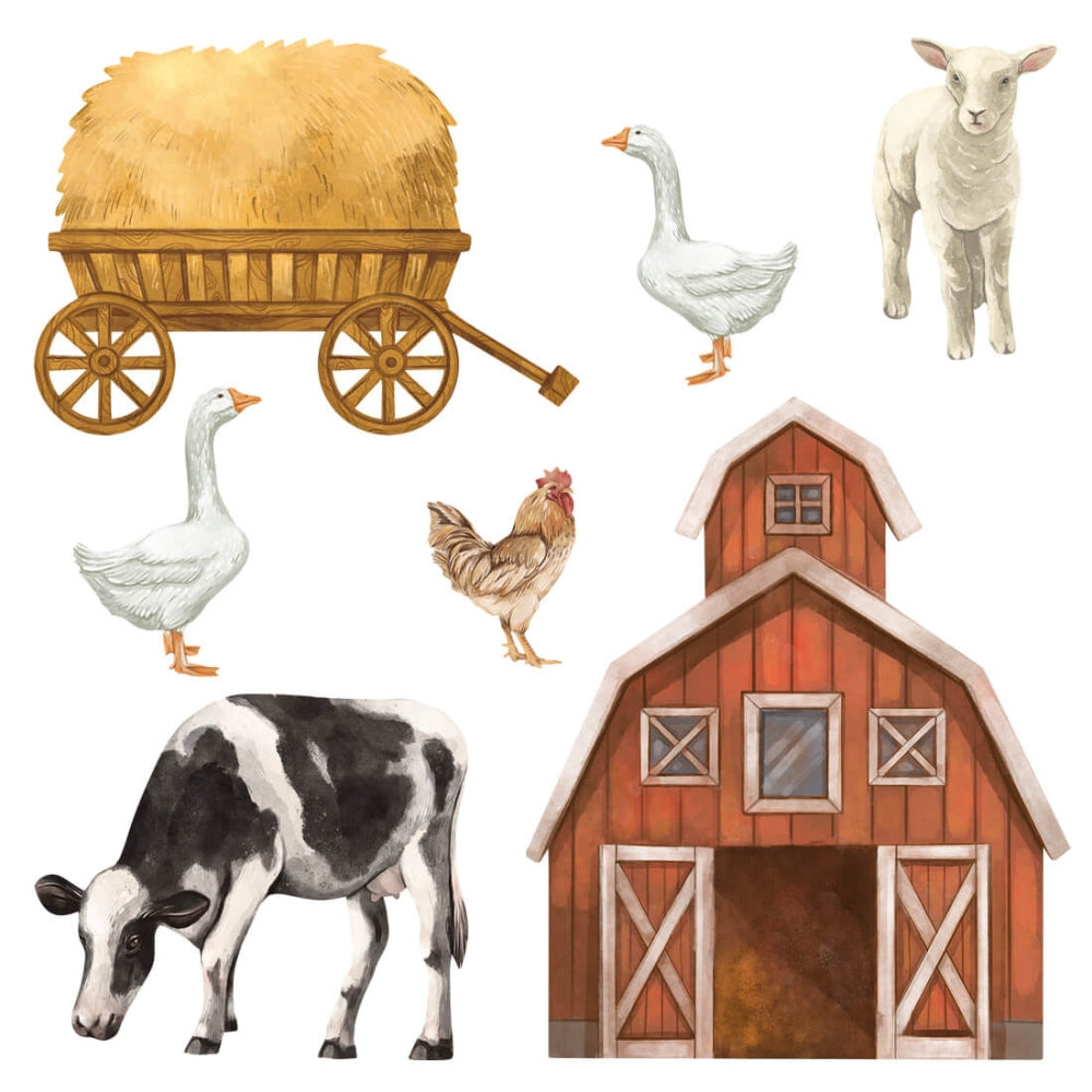 PASTELOVELOVE väggdekaler för barn bondgårdsdjur II