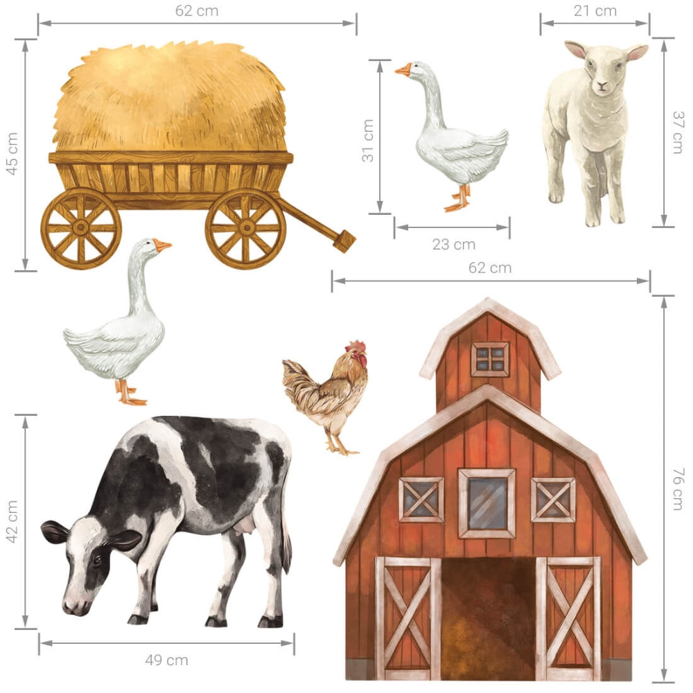 Denna samling av väggdekaler för barn tar oss direkt till den pittoreska landsbygden, där du kan njuta av fängslande vyer över naturen och det dagliga livet på gården.