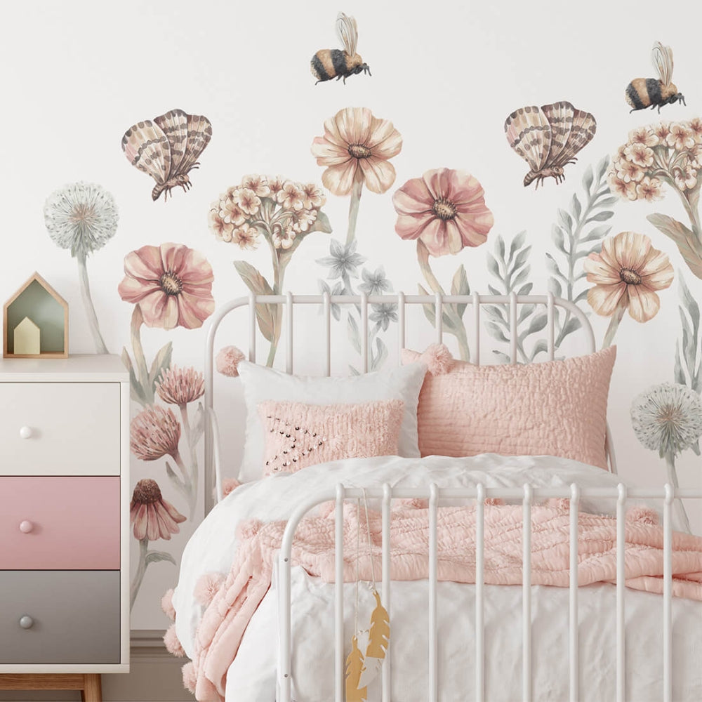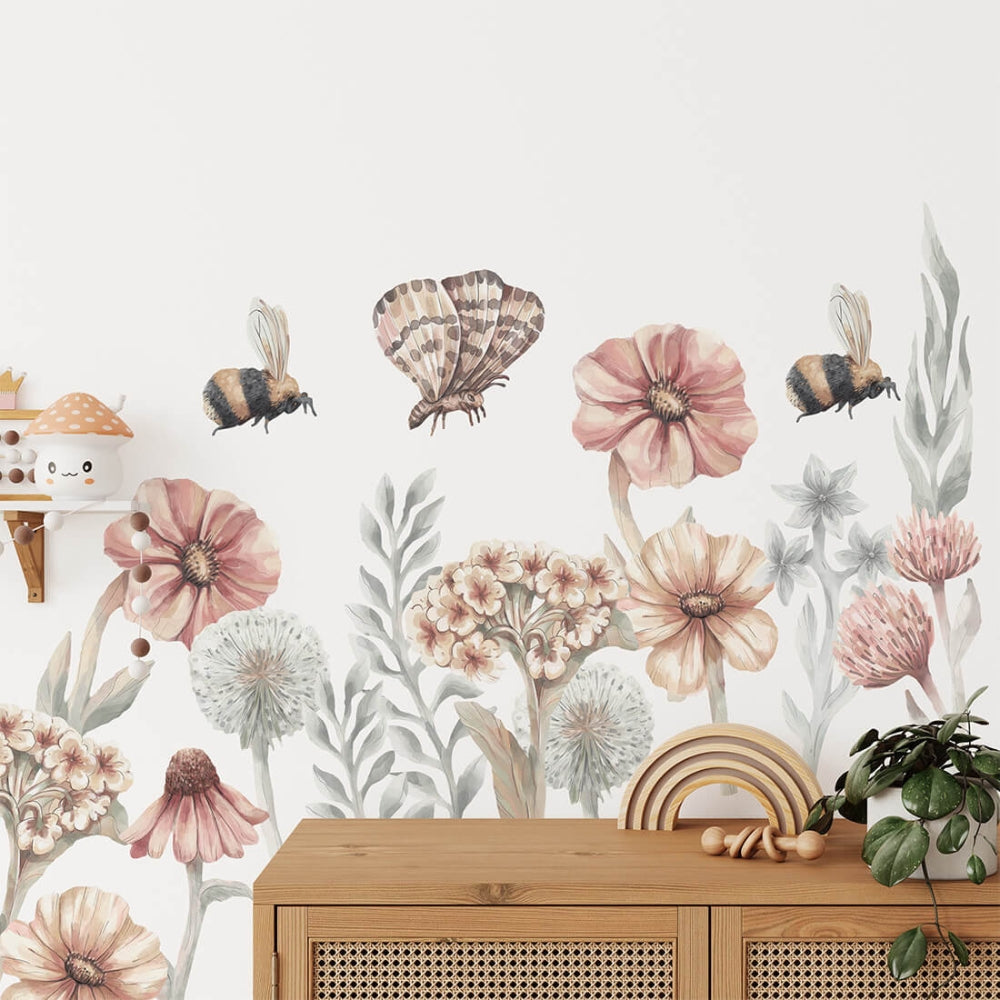 PASTELOVELOVE Väggdekaler för barn, fältblommor, set II