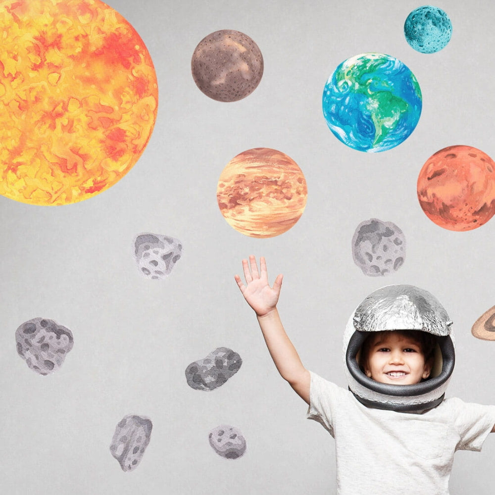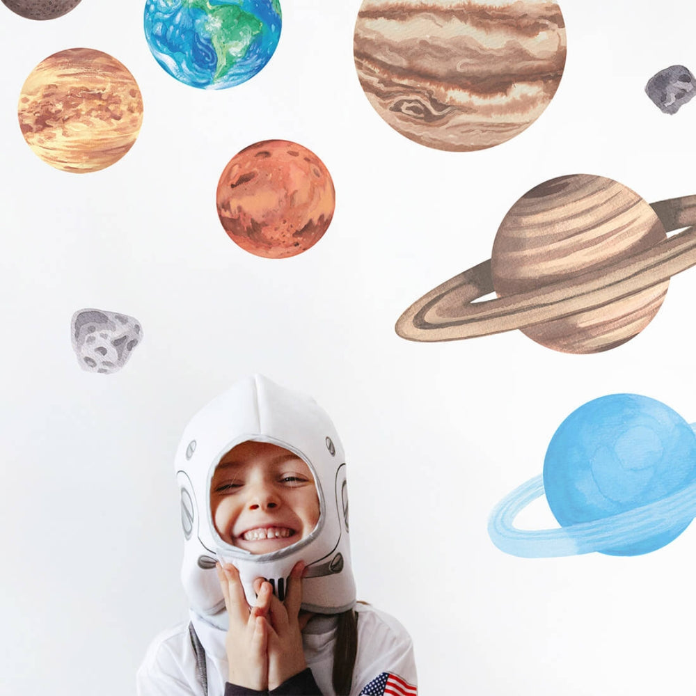 Väggdekaler för barnplaneter är ett utmärkt sätt att lägga till ett jordiskt rymdtema i ditt barns rum.