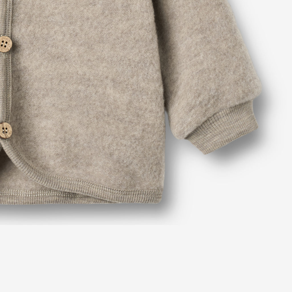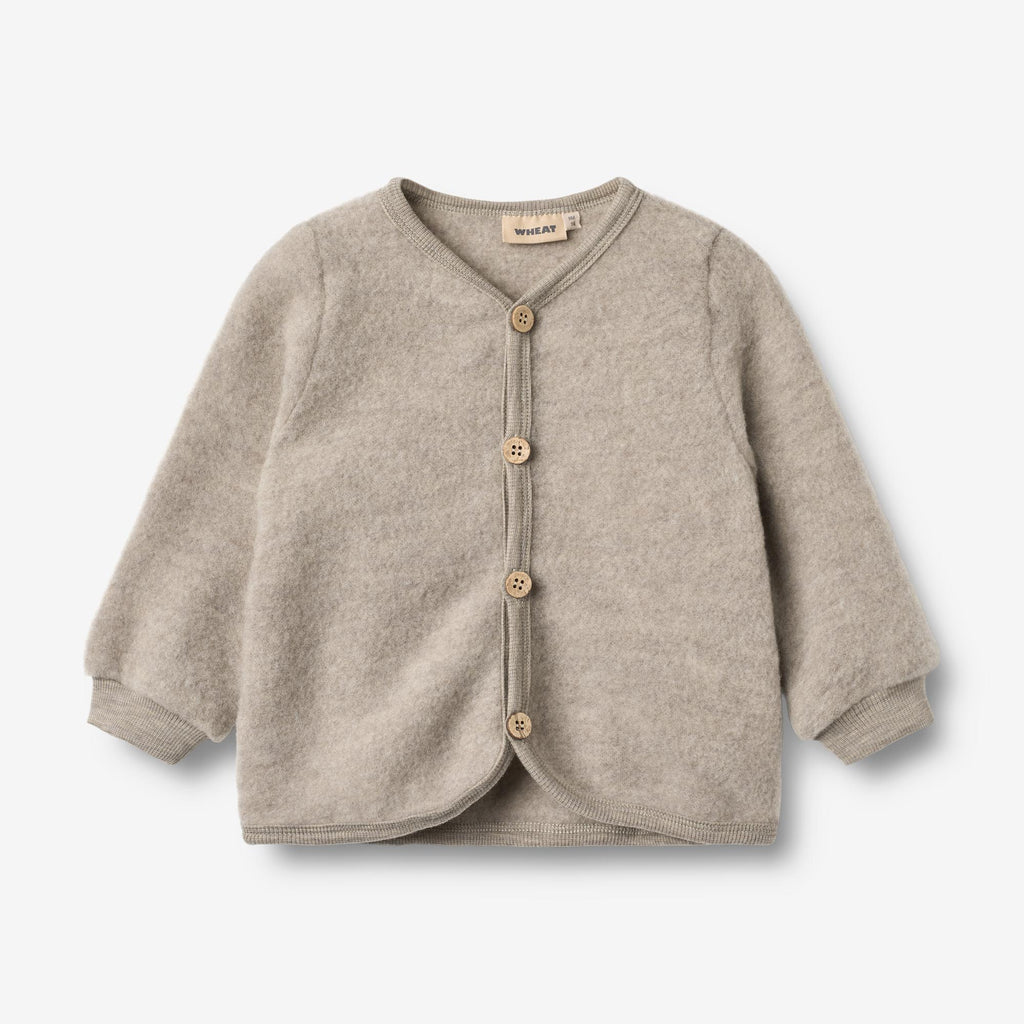 Ullens naturliga egenskaper gör att Wheat-kläder hjälper till att reglera barnets kroppstemperatur, så koftan för flickor är perfekt för lager på lager.