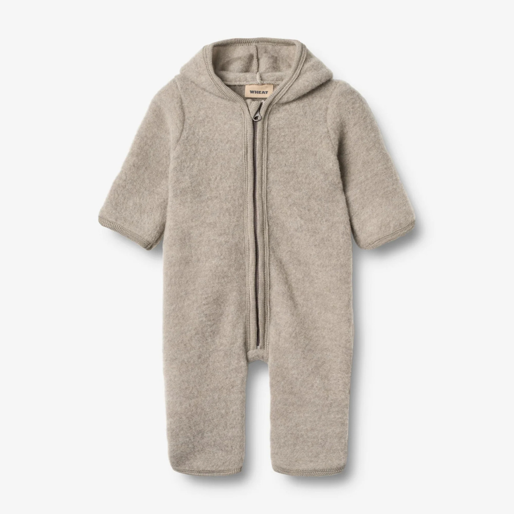 Wheat ulljumpsuit för barn i filtad merinoull är ett mjukt och varmt val för barn under kalla dagar.
