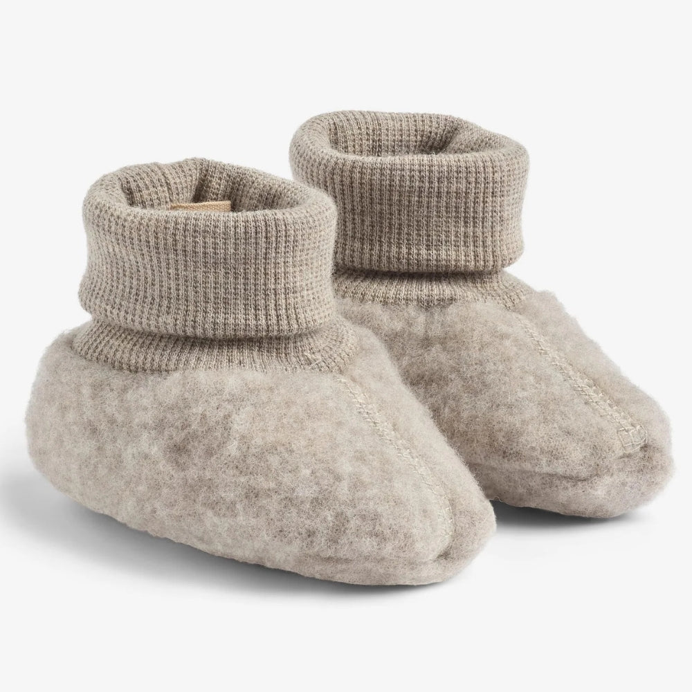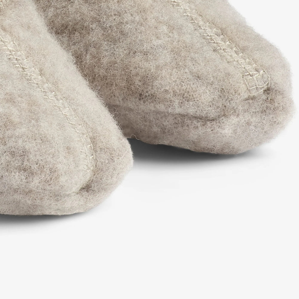 De är tillverkade av mjuk merinoull och håller barnets fötter varma samtidigt som huden kan andas.