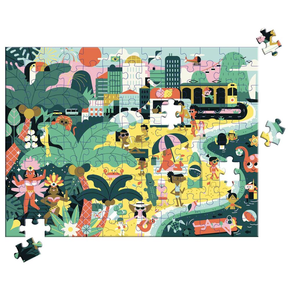 Temat för pusslet är det färgstarka Rio De Janeiro, som du hittar avbildat på det 130-bitar stora pusslet.