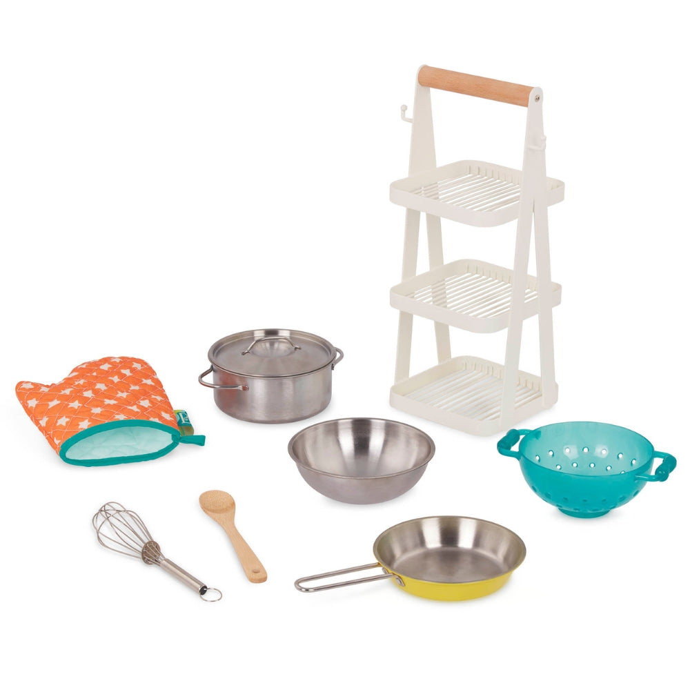 Köksredskapen från B.Toys är trogna imitationer av sina verkliga motsvarigheter, anpassade till barnens proportioner.