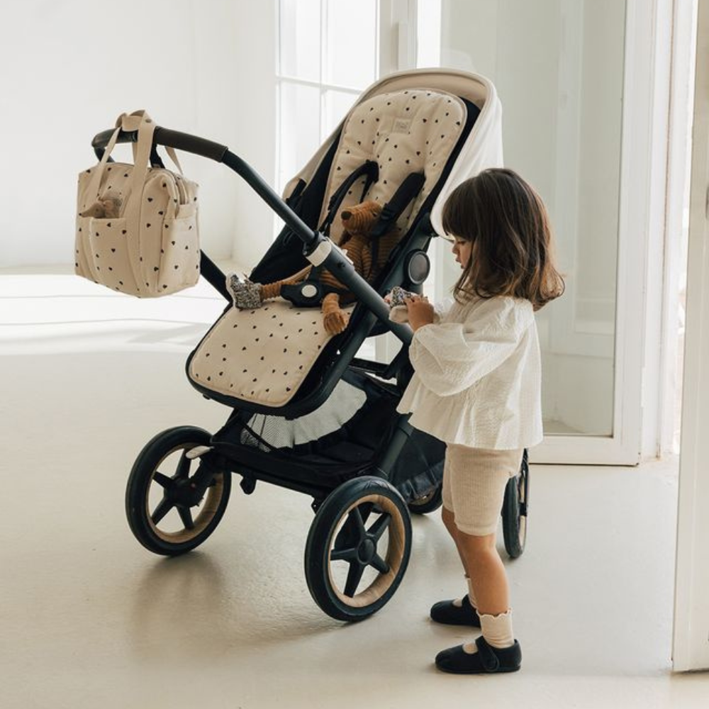 En barnvagnsdyna som är lätt att packa undan och fylla på efter en promenad - praktisk för vardagsbruk och för längre utflykter.