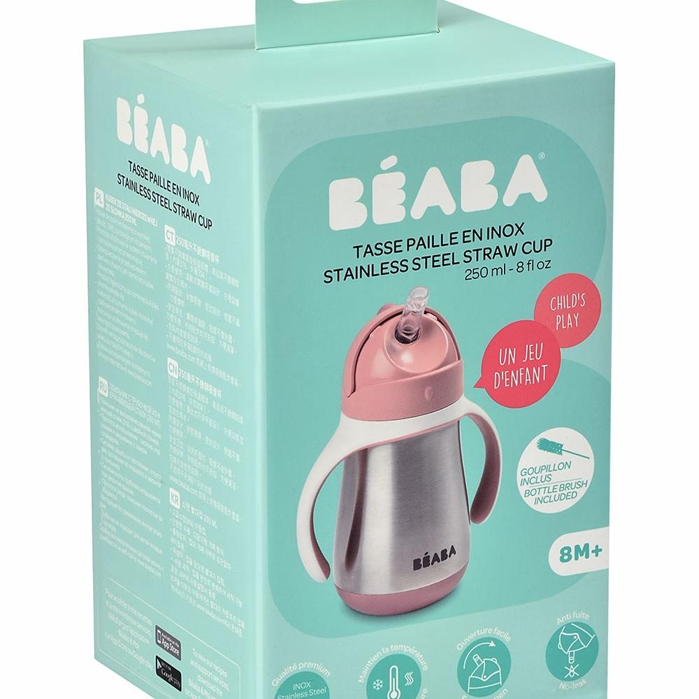Beaba Steel droppfri koppflaska med sugrör 250 ml gammalrosa