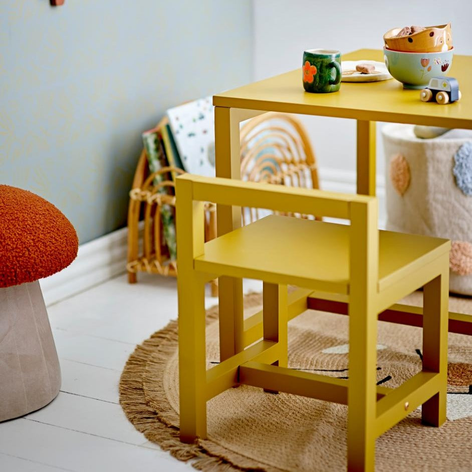 Barnmattan Harrison Rug från Bloomingville Mini passar utmärkt bredvid sängen, framför soffan eller varhelst den behövs.