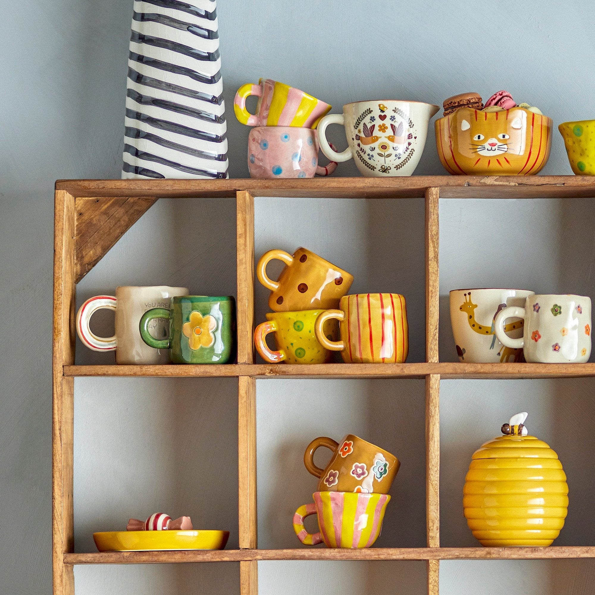 Tillverkad av stengods med ett vackert handmålat kattmotiv.