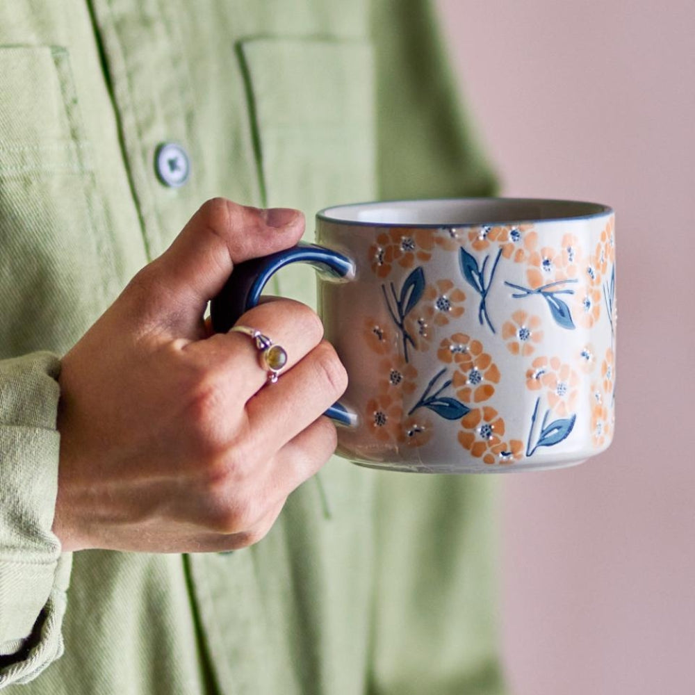 Koppen från Bloomingville är tillverkad av högkvalitativt stengods och har handmålade dekorationer som ger en färgstark touch till varje ögonblick.