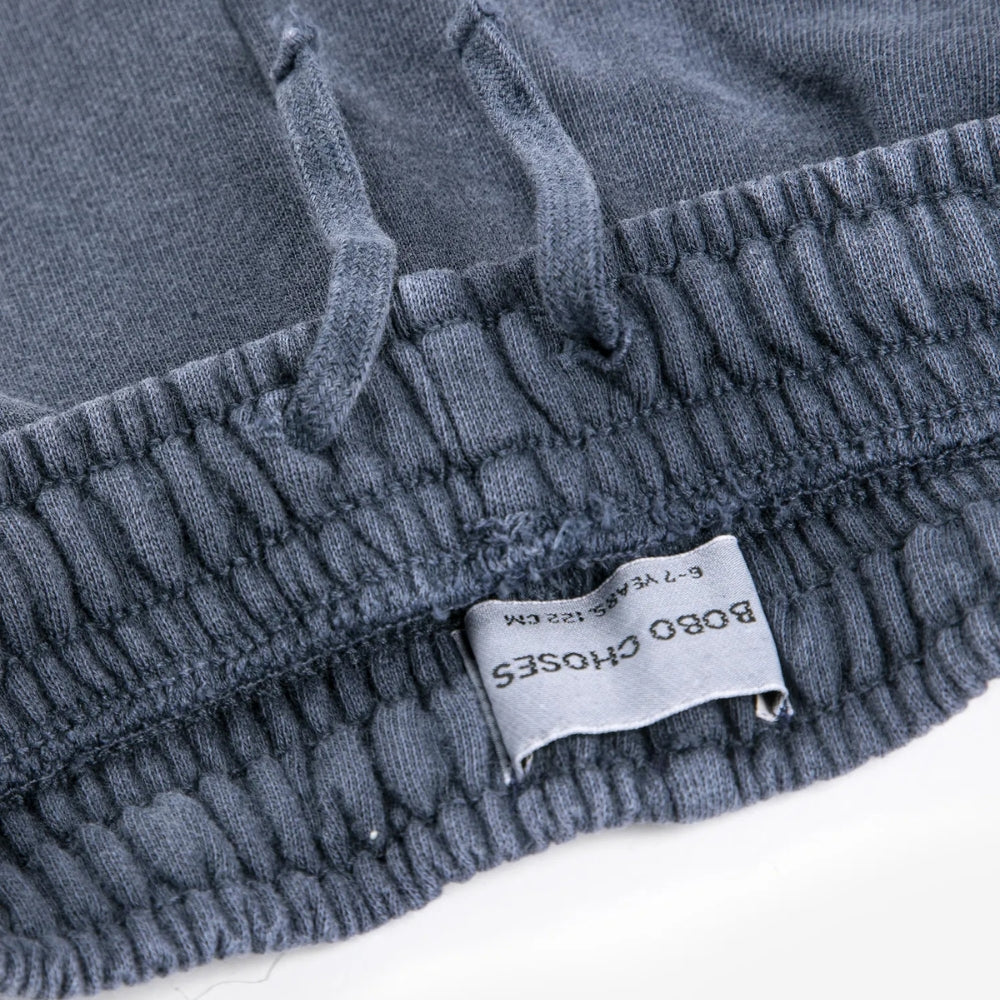 Detta gör att kortbyxorna för barn är vänliga mot barnets hud och miljön. Produktionen i Spanien bekräftar Bobo Choses varumärkes uppmärksamhet på etiska standarder och högkvalitativt utförande.