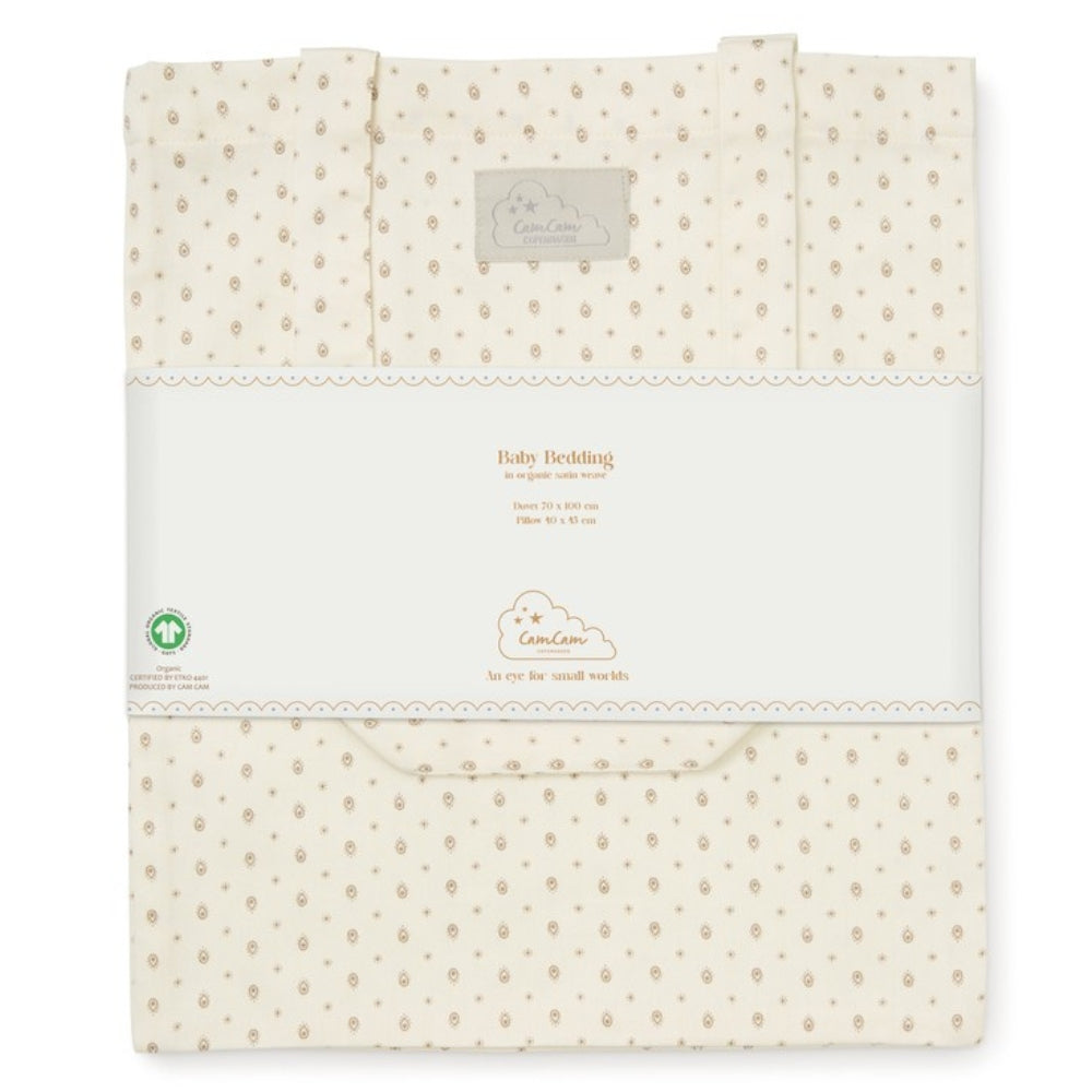 Cam Cam Copenhagen örngott för babysängkläder är ett mjukt, ekologiskt set som sveper in din lilla i bomull med satinväv som är behaglig att ta på.