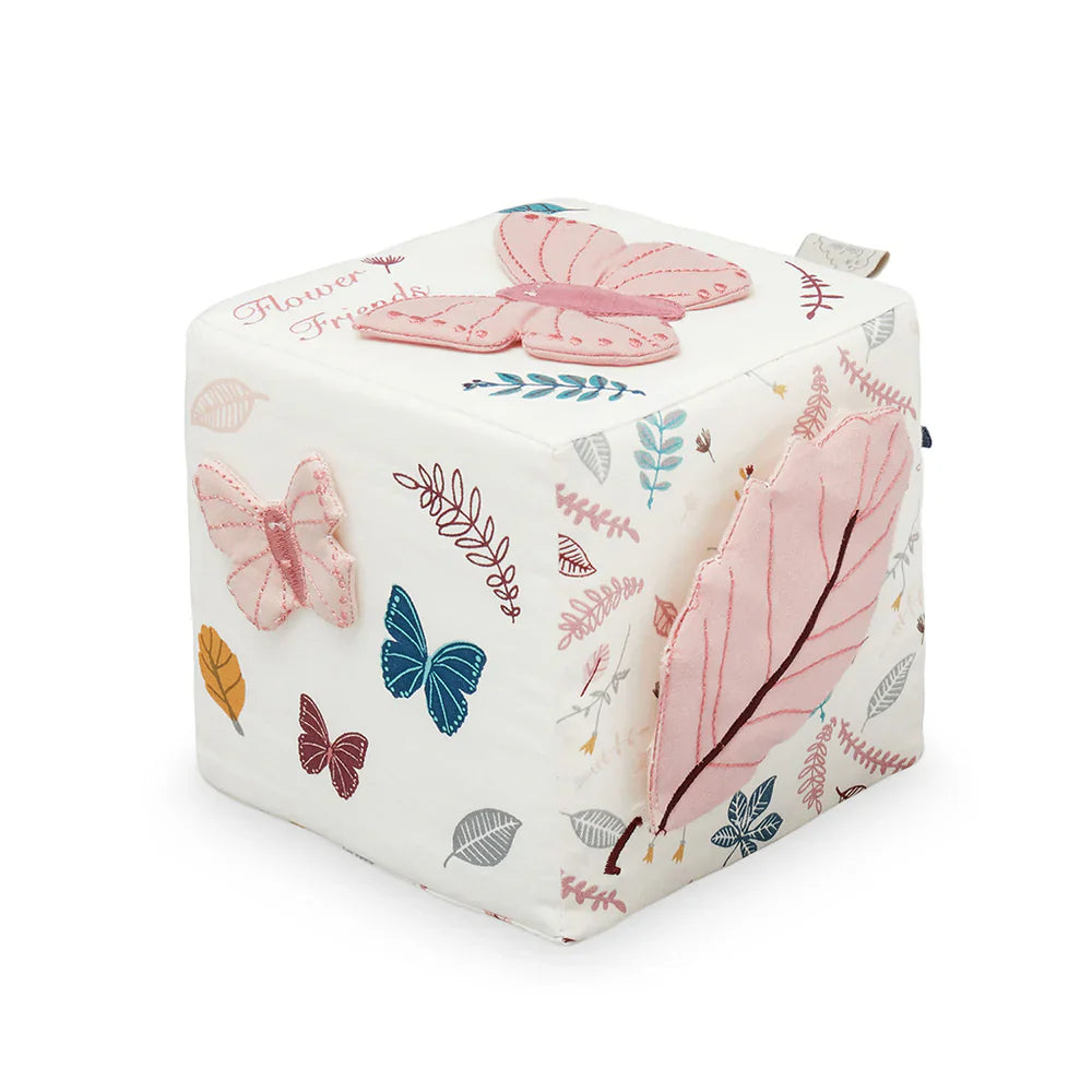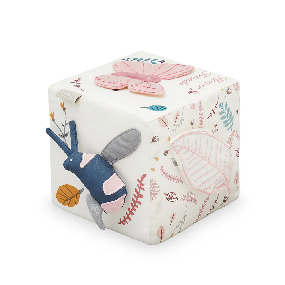En mjuk pedagogisk kub inspirerad av det förtrollande Flower Friends-designen från Cam Cam.