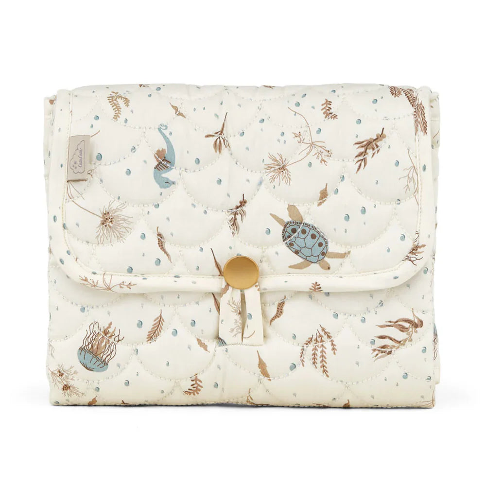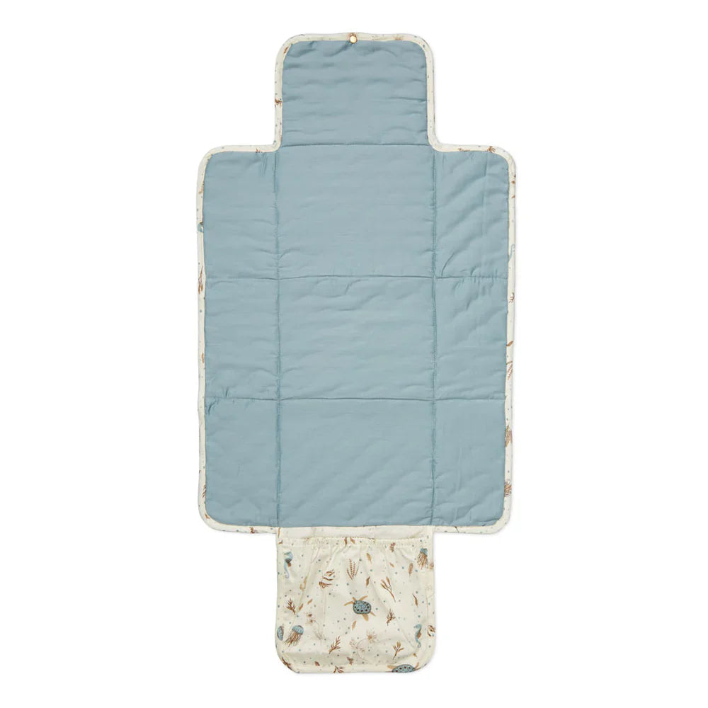Med sitt vackra, delikata Sea Garden-tryck och ekologiska material av högsta kvalitet är Cam Copenhagens skötunderlägg inte bara ett praktiskt utan också ett stilfullt tillskott till alla babykläder.