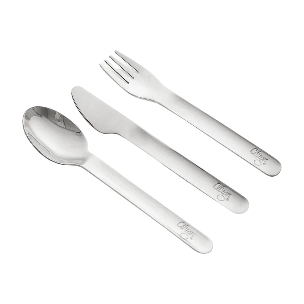 Bestickset i silikonfodral – gaffel, kniv och sked i ett lättviktigt fodral.