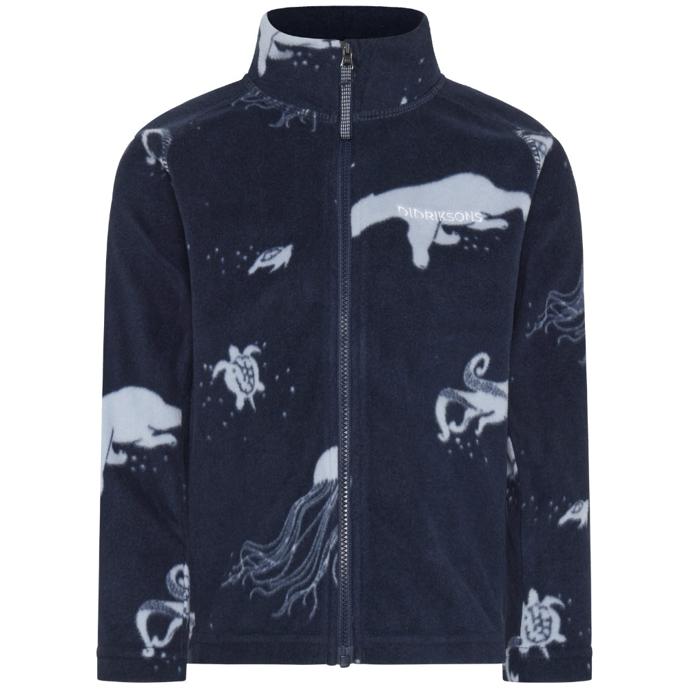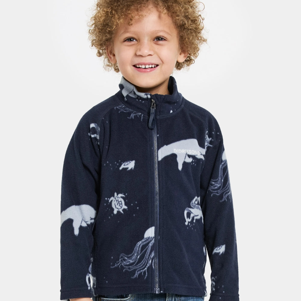 Mönstret på tyget ger en lätthet och barnslig lekfullhet, vilket gör Didriksons zip-up-tröja för barn inte bara funktionell utan också mycket omtyckt av barn.