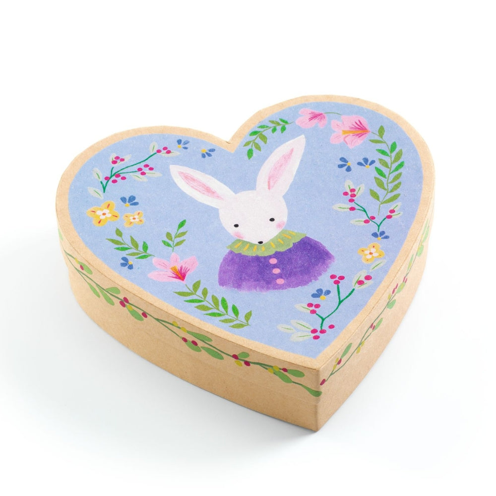 Inuti väntar en härlig hjärtformad ask, som Djeco har dekorerat med en illustration av en söt kanin.