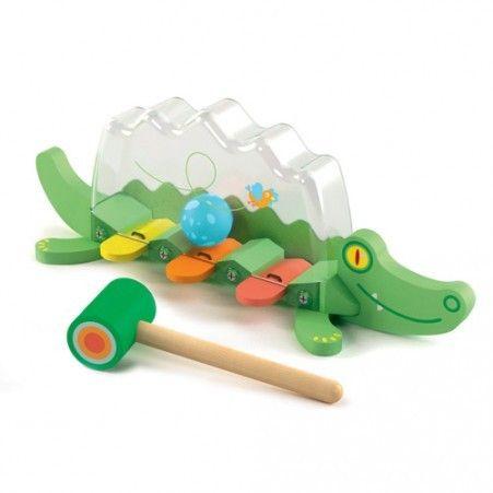 När du slår på krokodilcymbalen med hammaren kommer bollen att sättas i rörelse och studsa lekfullt, vilket kommer att vara till stor glädje för det lilla barnet.