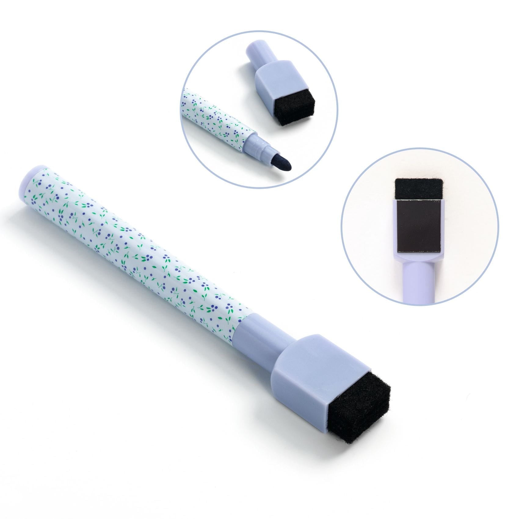 Satsen innehåller en torrraderbar penna med magnetiskt lock och en liten svamp.
