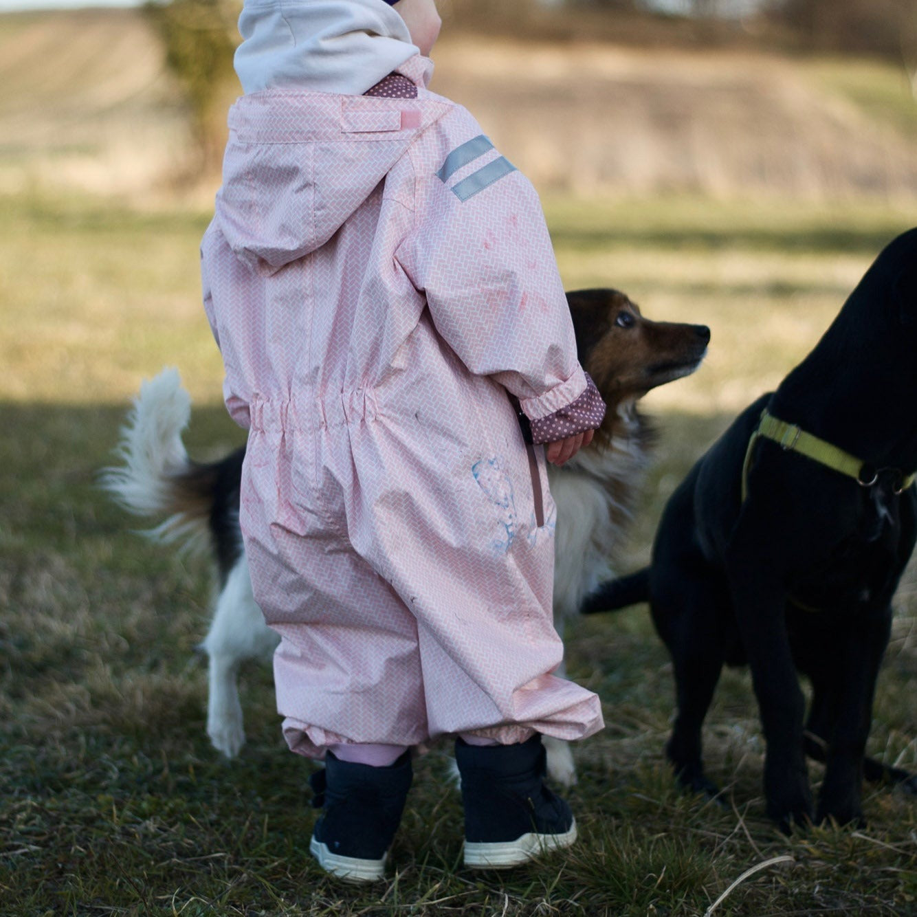 Barnens regndräkt garanterar värme och komfort under utomhuslek.